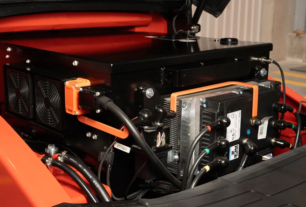 Con ruedas neumáticas y batería de litio, este modelo híbrido ofrece lo mejor de dos mundos: la fuerza estructural de un montacargas convencional y los beneficios sostenibles de la electromovilidad. Ideal para empresas en transición energética.