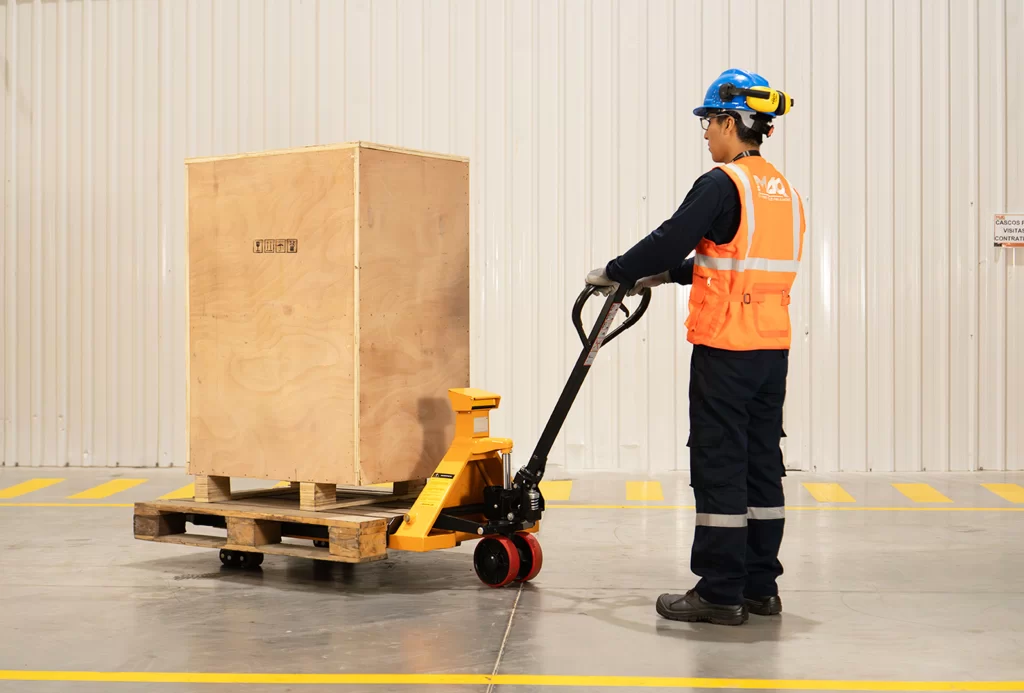 Mide y mueve. Esta transpaleta con balanza incorporada permite pesar cargas al instante sin detener la operación.